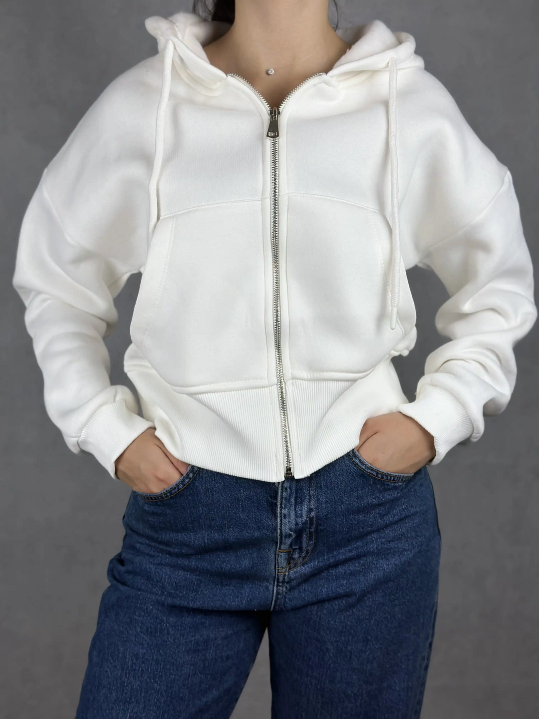 Бял суитшърт с цип