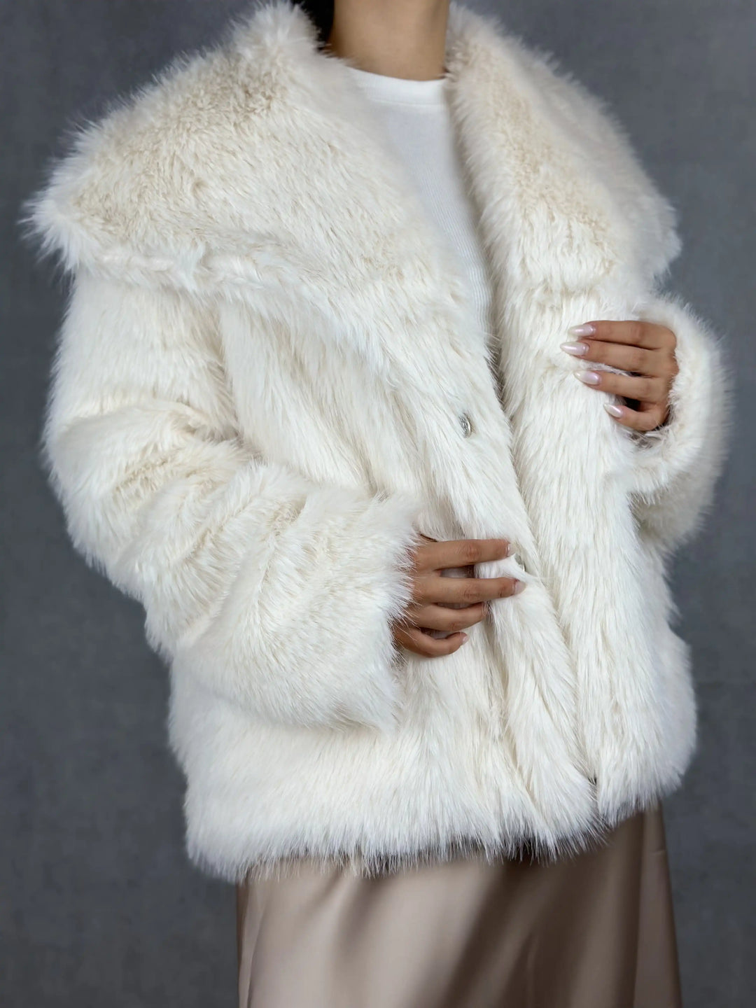 Елегантно бяло пухено палто