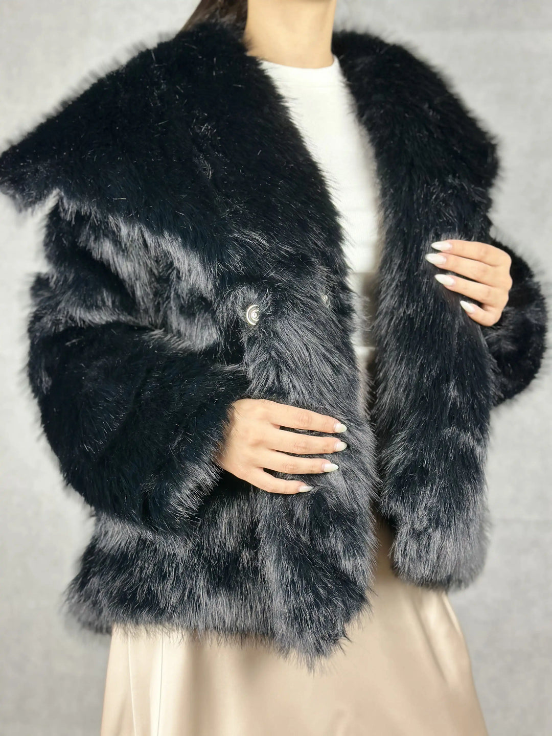 Елегантно черно пухено палто
