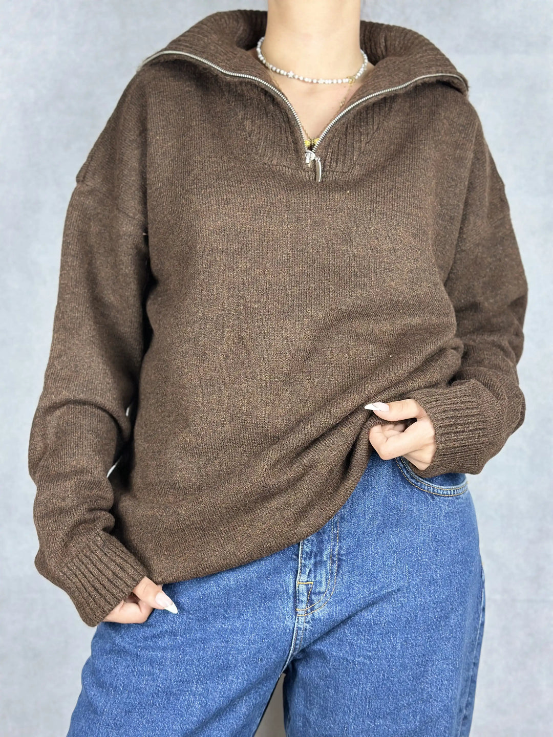 Кафяв пуловер с цип