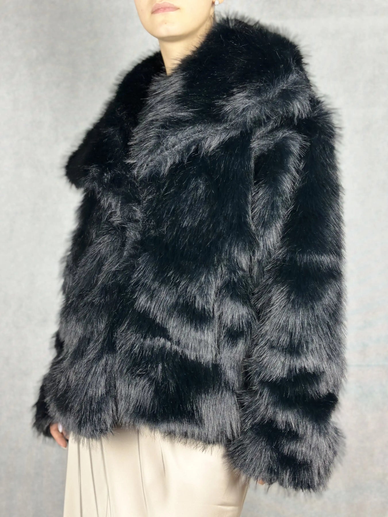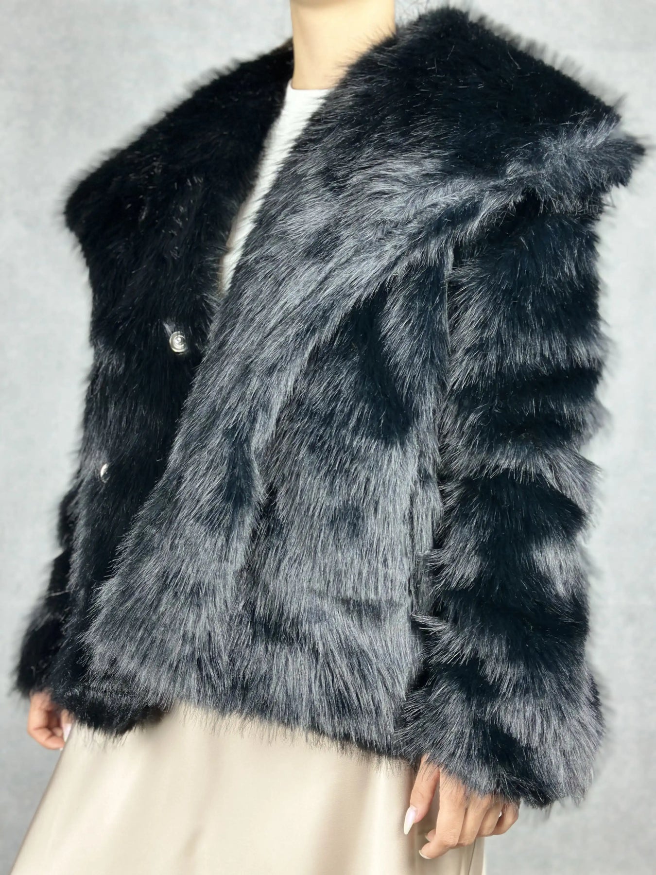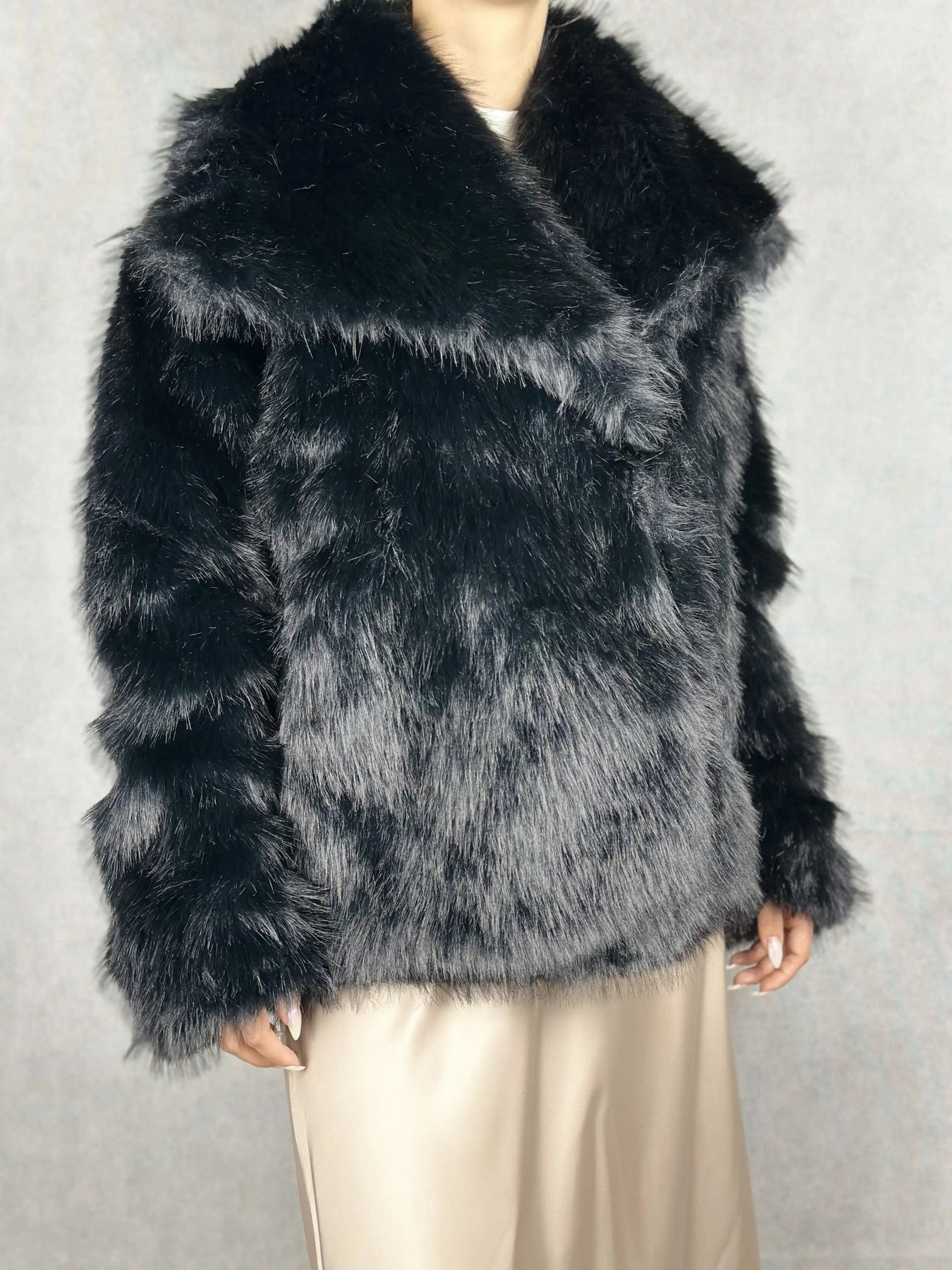 Елегантно черно пухено палто